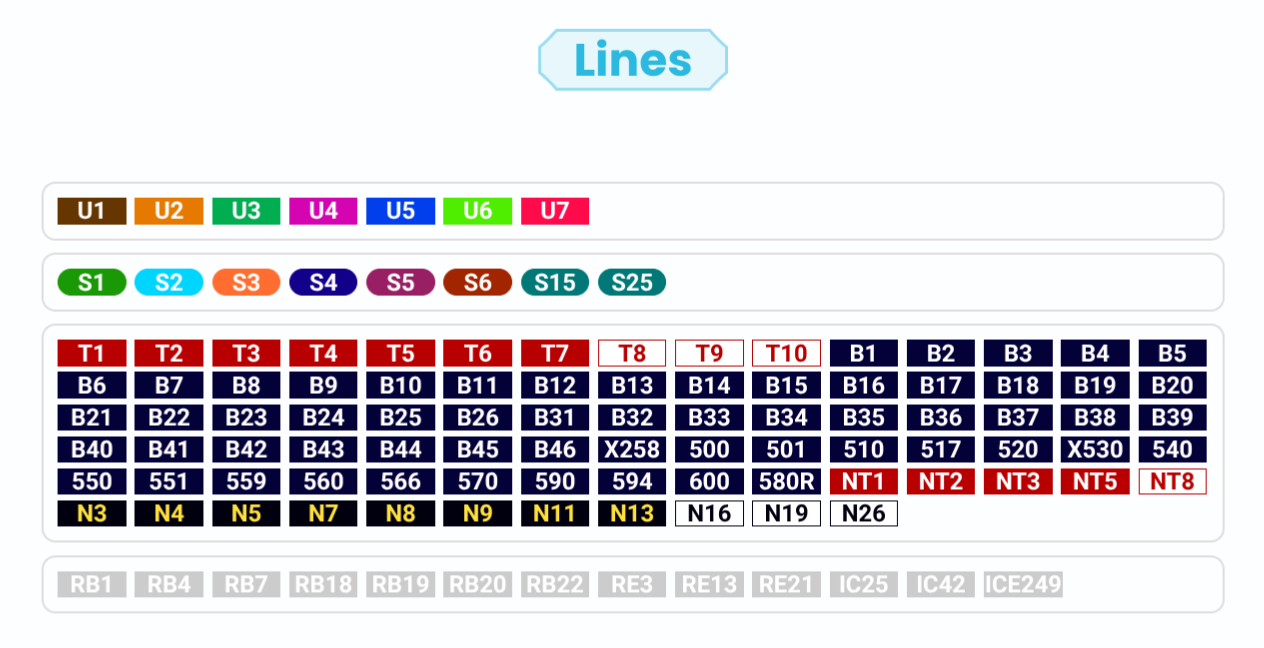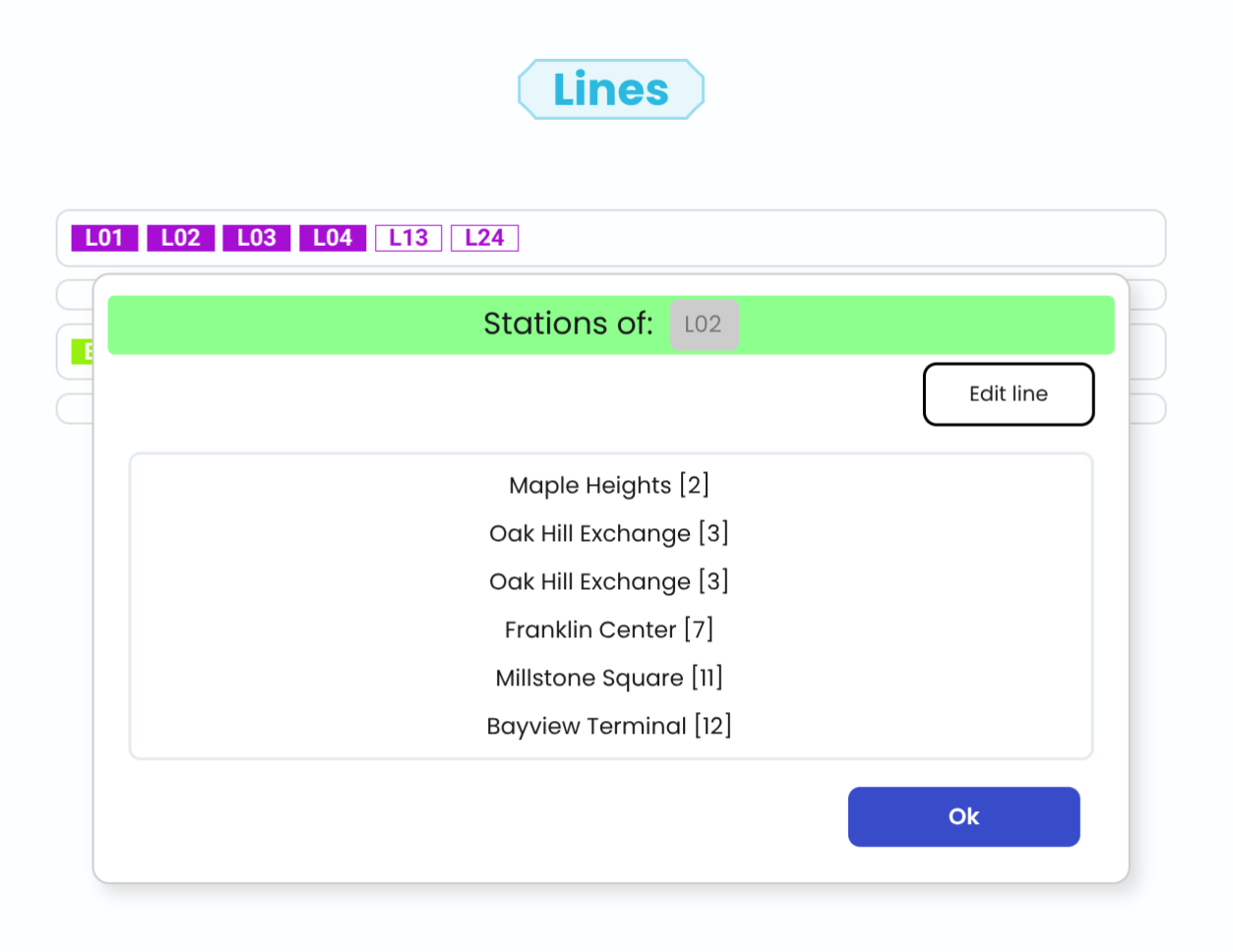 With the Line Manager, there is a comprehensive possibility to create and manage transport networks and their lines in a structured way. From the definition of the stations to the design of the line routes and the diverse visual adaptation of the lines, all elements can be flexibly adapted and clearly presented.