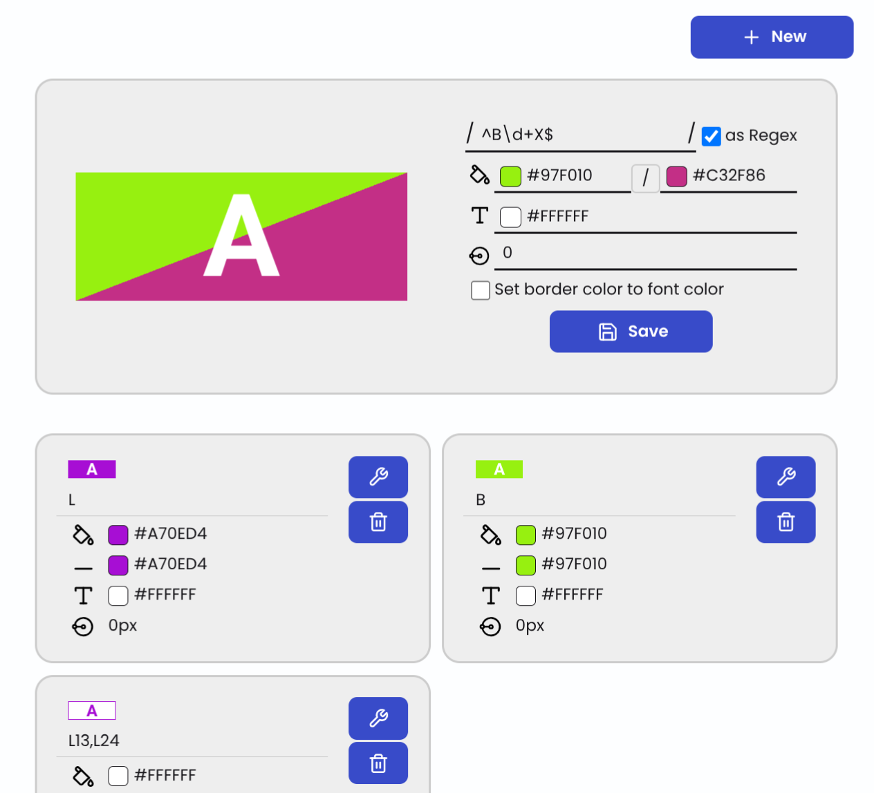 Additionally, individual colors and symbols can be defined for lines to make the visual representation clearer and more uniform. For each line, a specific icon can be set, which is displayed in plans or overviews, for example. It is also possible to work with regular expressions (Regex) to automatically assign multiple lines to certain colors or symbols. This is particularly helpful for larger networks with many lines, as recurring patterns can be efficiently recognized and uniformly displayed. Furthermore, the appearance of the icons can be further customized, for example by configuring the radius, which allows the size and display to be optimally adapted to the respective purpose.