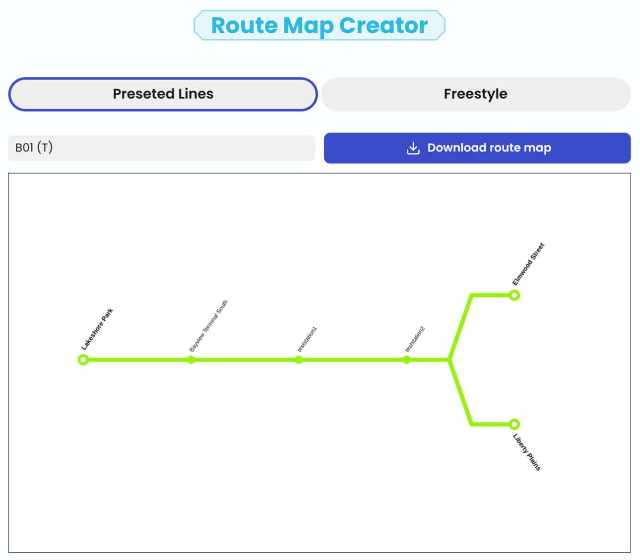 To create more flexible and free route plans, the Freestyle mode can be used. The color of the line can be set and stations can be added and removed as desired.